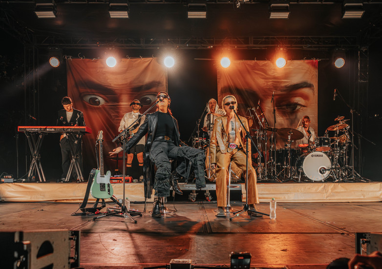 Tras dejar atrás a Reyna Tropical, nos dirigimos hacia el escenario principal Sonorama, ahí encontramos un buen lugar para disfrutar del atardecer mientras nos movíamos suavemente con el acto de Papooz, quienes se notaban emocionados y felices de tocar en suelo mexicano, nos brindaron un set muy cercano, terso y ameno, excelente para la transición de la tarde a la noche. Ya con el lugar asegurado y más que anclados esperamos la llegada de Ezra Collective que vaya que saben elevar un acto, desde el primer momento se percibía la energía, pero eso y el poder del jazz y el reggae lo manejaron como alquimistas al llevar desde la calma hasta el éxtasis el set en solo instantes, tanto así que bajaron del escenario para sumergirse entre el público, tocar dentro de la laguna de gente y bailar con ella, un apapacho de ida y vuelta, podemos decir que fue un círculo de gozadera total.