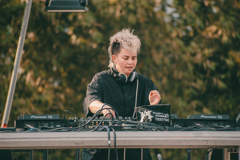 Después de ya estar frescos, con el estómago lleno y claro que sí, con una chelita en mano, nos dirigimos a La Estación a bailar con Mystery Affair quien estuvo precisa con un set genial para calentar el cuerpo, eso nos dejó listos para sentir la cadencia, la energía y sobre todo la luz de Reyna Tropical, quien con un resplandeciente traje verde y unas botas piporras lucía espectacular, fue un impacto su outfit durísimo, pero no tanto como su set que fue verdaderamente un agasajo, lleno de ritmo, energía y en serio, le hace honor totalmente a su nombre Reyna Tropical, no hay otra manera de describirla. Vaya cátedra de cómo utilizar las texturas latinas tropicales, el house y el indie pop.